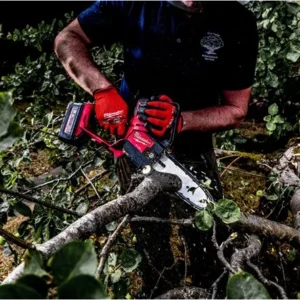 Sierra de poda M18 Hatchet con barra de 20cm de la marca Milwaukee con sistema flexible para todas las baterías M18.