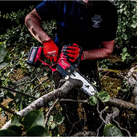 La sierra de poda M18 Fuel Hatchet con barra de 20cm proporciona una potencia y un par motor excepcionales para cortar maderas duras sin parar.